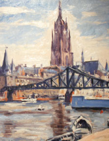 Leicht müsste es für jeden Interessierten sein, die Kunsthandlung Julius Giessen zu finden, die am Rande der Frankfurter Innenstadt gelegen ist, inmitten zweier markanter Wahrzeichen, nämlich beinahe geradlinig zwischen Alter Oper und dem Eschersheimer Turm.